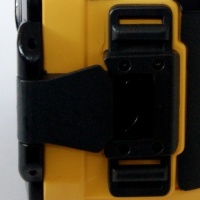 an der von vorne gesehen rechten Seite ist eine Anschraubmöglichkeit für die externen Blitze eingebaut. Der
